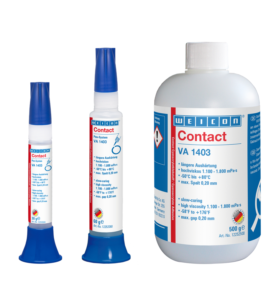 O adesivo é menos susceptível aos efeitos da humidade após a cura. WEICON Contato VA 1403 é adequado para a colagem limpa e visualmente apelativa de vários materiais. WEICON Contato VA 1403 pode ser utilizada em numerosas aplicações industriais.