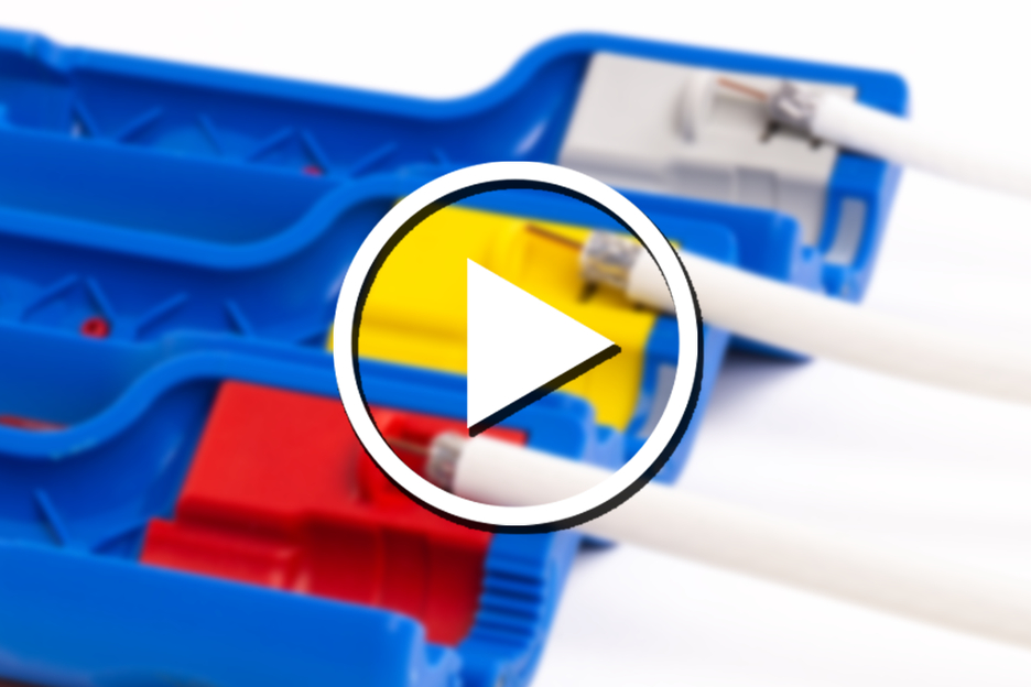 Gripping jaws for screwing F-screw connectors onto the cable Space-saving mounting and dismounting of F-connectors thanks to integrated open hexagon with 11 mm wrench size (SW 11) Stripping without adjustment of the blades with length stop for common F-connectors (6 / 4 mm) Optional: Knife inserts for stripping to other defined dimensions available (e.g. compression connectors: 6.5 / 6.5 mm)