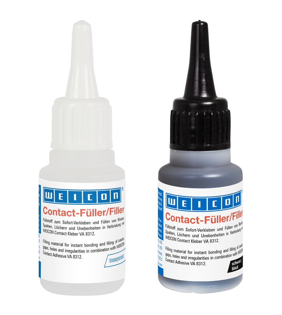 Enchimento à base de sílica especialmente desenvolvido para os adesivos de cianoacrilato WEICON para cobrir fendas maiores de mais de 0,1 mm, bem como para preencher fissuras, fendas, buracos e desníveis. O Contacto de Enchimento é portanto adequado em combinação com o adesivo de cianoacrilato não só para colar, mas também para reforçar, moldar, modelar, fixar, encher, bem como para nivelar.