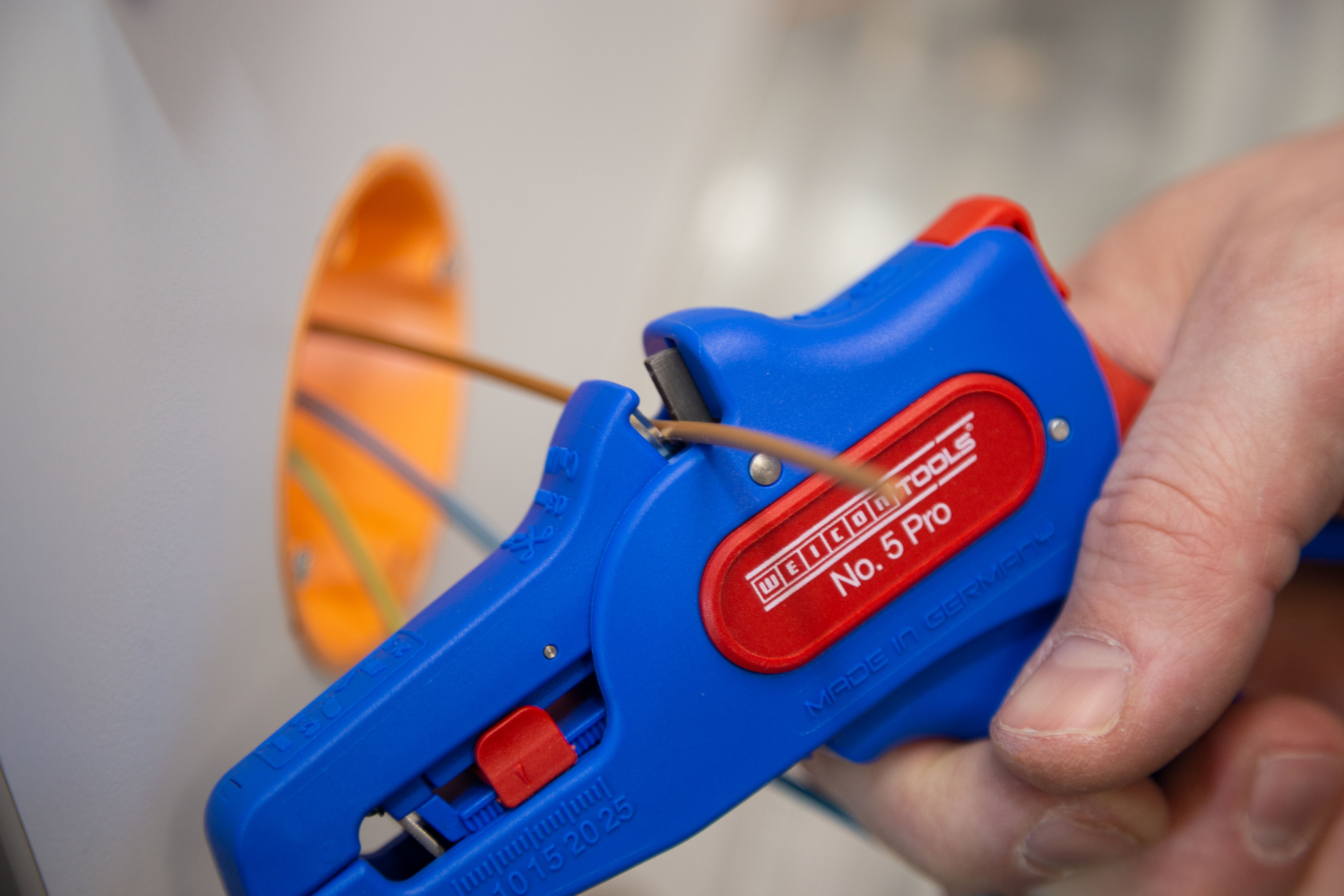 Após a revisão do clássico desencapador de fios WEICON TOOLS n.º 5, foi lançado o n.º 5 Pro com uma nova gama de trabalho e um novo design. A ferramenta de decapagem possui uma grande área de trabalho e pode, portanto, ser utilizada numa grande variedade de áreas. O descascador de fios automático é adequado para descascar todos os condutores padrão flexíveis e sólidos de 0,2 a 16 mm².².