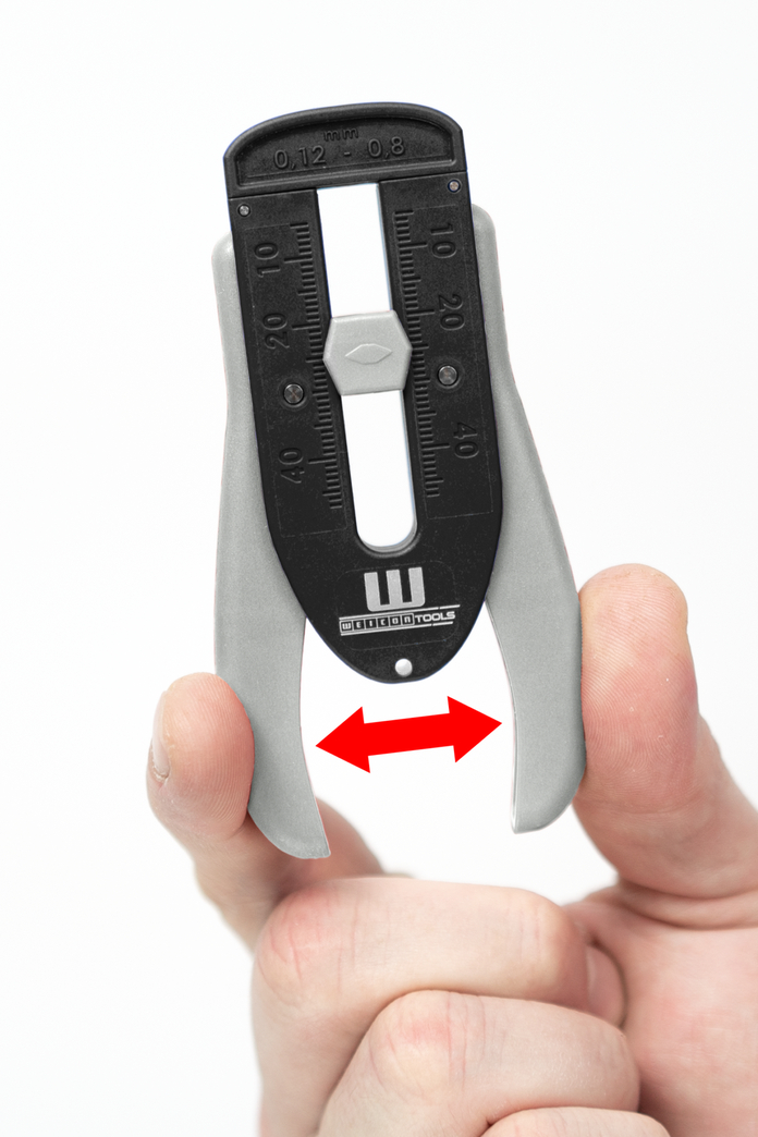 Descarnador de fio semiautomático para o descarne rápido e seguro de condutores, cabos ou fios extremamente finos com diâmetros pequenos de 0,12 mm - 0,8 mm (36 - 20 AWG). A ferramenta foi testada por um laboratório ESD e está em conformidade com a norma DIN EN 61340-5-1. O descarnador de fios é adequado para trabalhar em áreas protegidas eletrostáticas (área de trabalho ESD / área protegida ESD). Com o batente de comprimento escalonado e ajustável para a faixa de trabalho de 5 a 45 milímetros, o comprimento de descarne desejado pode ser definido de forma rápida e confiável. Duas molas de torção duráveis e precisamente ajustadas, que empurram simetricamente sobre o par de lâminas com uma força definida e cortam automaticamente o respectivo isolamento com a pressão adequada, garantem um trabalho confortável. Em combinação com o sistema de digitalização que está integrado na ferramenta, isso garante uma remoção sem danos. A ferramenta é adequada para usuários destros e canhotos.