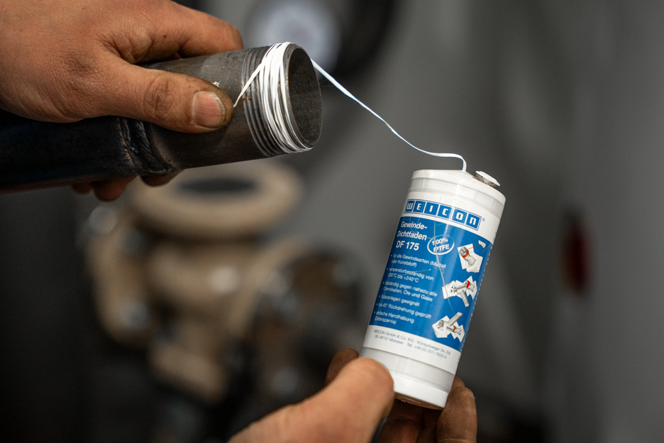 Fio para Vedação de Roscas DF 175 é um fio patenteado com 100% de PTFE e utilizado para a vedação de longa duração em quase todos os passos de rosca quer em metal ou plástico. O WEICON DF 175 compensa com segurança as fissuras nas roscas formando uma película em PTFE durante o aparafusamento da espessura necessária. Esta película é extremamente resistente, praticamente, a todos os produtos químicos, mesmo em solventes agressivos, agentes caústicos e ácidos. O WEICON DF 175 não é inflamável e funciona de forma fiável numa gama de temperaturas de -200°C (-328°F) até +240°C (+464°F). Ao contrário de outros materiais de vedação, para os quais o tecido atua apenas como uma base para o vedante real, o WEICON DF 175 é o próprio material de vedação. Com base nisto, não existe separação ao longo da vida útil após a conexão, entre o material de base com o material de vedação. WEICON DF 175 é um produto durável por tempo ilimitado permanecendo permanentemente macio e elástico. WEICON DF 175 é muito económico: Com apenas um rolo é possível substituir 20 rolos de fita PTFE (12 mm x 0,1 mm x 12 m).