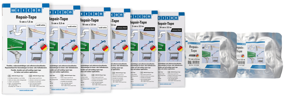 "Flexível, durável e auto-fusível. A Fita de Reparação é composta de plástico reforçado com fibra de vidro para reparações rápidas de emergência em áreas interiores e exteriores. A Fita de Reparação contém uma resina especial que é ativada por contato com a água. A aplicação é fácil e rápida, apresenta um adesivo muito resistente em quase todas as superfícies. Após apenas 30 minutos, a fita está totalmente curada e resistente. Após a cura completa, o material pode ser lixado e pintado. Tem uma elevada resistência química e à temperatura de -50°C (-58°F), temporariamente até +150°C (+302°F). A fita pode ser aplicada sem ferramentas adicionais e é utilizada para reparações confiáveis e duráveis em aplicações industriais, profissões especializadas, em casa e no sector do campismo e da bricolage."