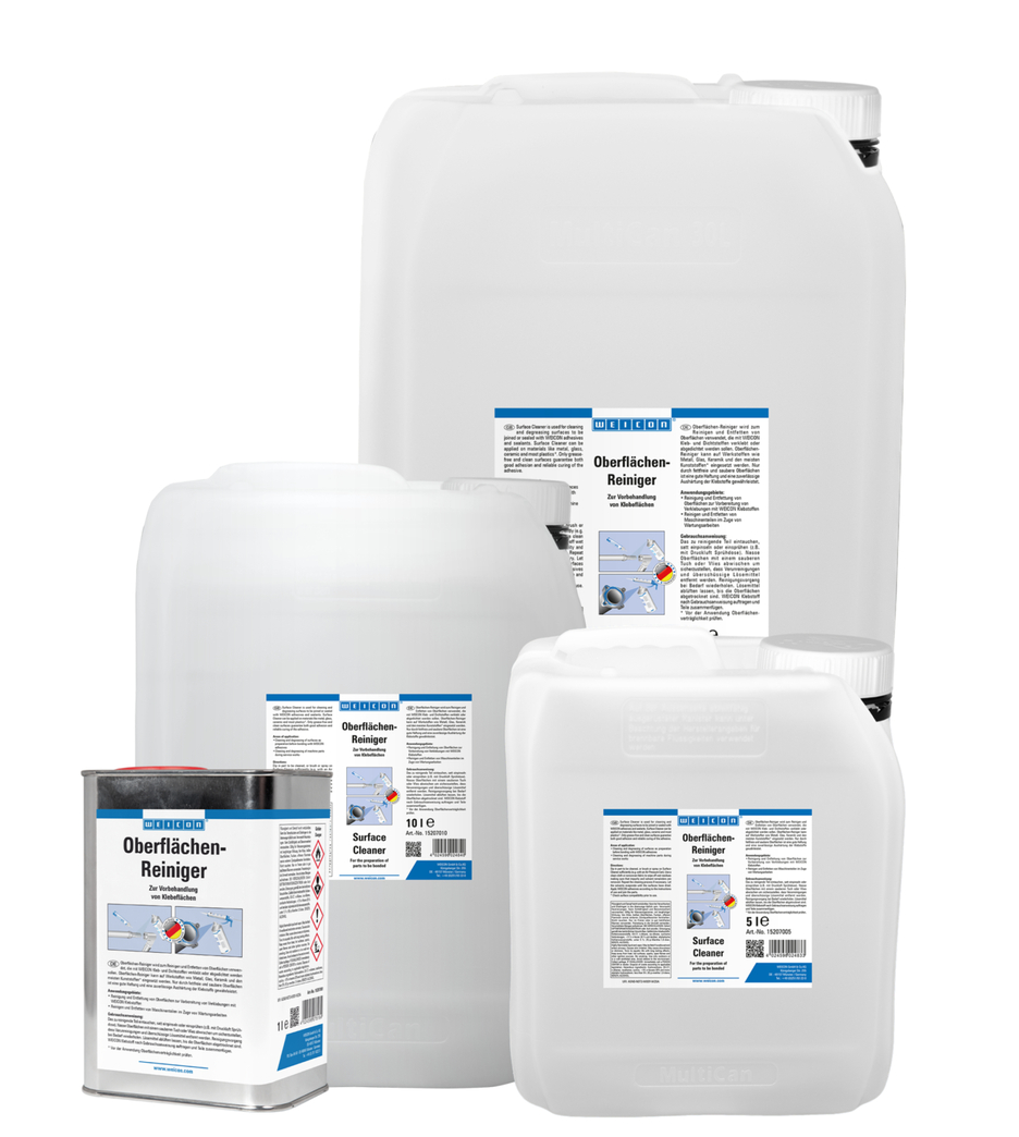 O Líquido de Limpeza de Superfícies WEICON é utilizado para a limpeza e desengorduramento de superfícies que vão ser coladas ou vedadas com os Adesivos e Vedantes WEICON. O Líquido de Limpeza de Superfícies pode ser utilizado em materiais como o metal, o vidro, a cerâmica e a maioria dos plásticos. Pode ser utilizado, por exemplo, para limpar e desengordurar componentes de máquinas durante os trabalhos de manutenção.
