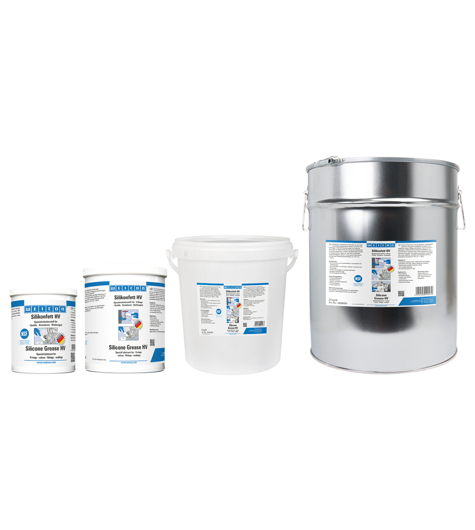 A Massa de Silicone WEICON HV é altamente adesiva, transparente e apresenta uma ótima compatibilidade com os plásticos. Devido ao seu registo NSF H1, é adequado como lubrificante para válvulas, acessórios e vedantes em áreas sensíveis. Esta massa está em conformidade com a Diretriz para a Avaliação Higiénica de Materiais Orgânicos em contato com a Água Potável (diretriz KTW) da Agência Federal Alemã do Ambiente. Pode ser utilizado na indústria alimentar e de bebidas, na construção de instalações sanitárias e de aquecimento, na indústria farmacêutica, bem como na tecnologia de vedação. A Massa de Silicone WEICON HV é testada em termos de segurança pelo Instituto Federal Alemão de Investigação e Teste de Materiais (BAM) - cf. folheto 034-1 "Lista de materiais não metálicos para utilização em oxigénio" (informação DGUV 213-075) do BG RCI. A massa é especialmente amiga dos materiais, inodora e insípida e tem uma resistência à temperatura de -40 °C a +200 °C. A Massa de Silicone WEICON HV é adequada para a lubrificação de peças de plástico, peças de borracha e vedações, válvulas, acessórios e juntas, para dispositivos e sistemas.
