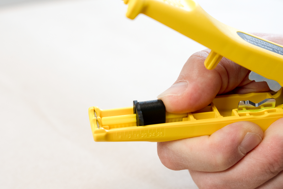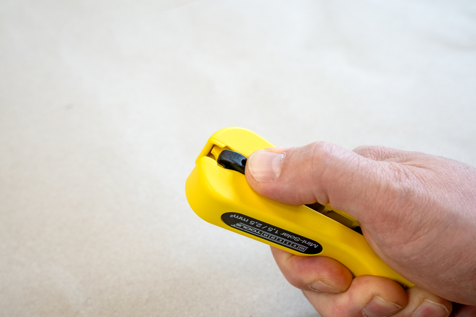 Com o Descarnador Mini-Solar 1,5/2,5 mm², todos os cabos solares comuns podem ser descarnados de forma rápida e fácil. Não é necessário ajustar manualmente a profundidade de corte. O batente de comprimento integrado (de 6-28 mm) é adequado para o descarne de cabos solares de 1,5 ou 2,5 mm². Além disso, a ferramenta reforçada com fibra de vidro tem um cortador lateral facilmente acessível para cabos até 10 mm². Ao utilizar o descarnador, é criado um padrão de corte preciso durante o descarne. Além disso, o Mini-Solar 1,5/2,5 mm² pode ser bloqueado para poupar espaço.