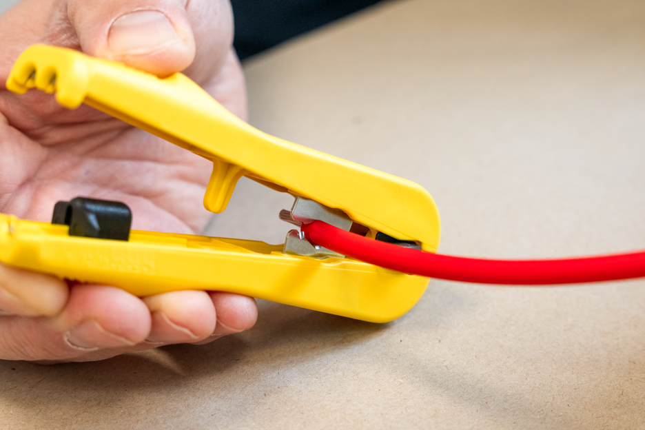 para o descarne e esfolamento de cabos fotovoltaicos comuns (como H1Z2Z2-K) com uma secção transversal de 1,5 & 2,5 mm² I com cortador lateral integrado