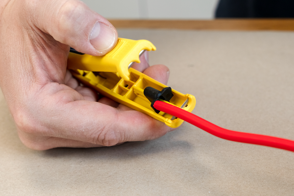 para esfolar e descarnar cabos fotovoltaicos comuns (como H1Z2Z2-K) com uma secção transversal de 10 & 16 mm² I com cortador lateral integrado
