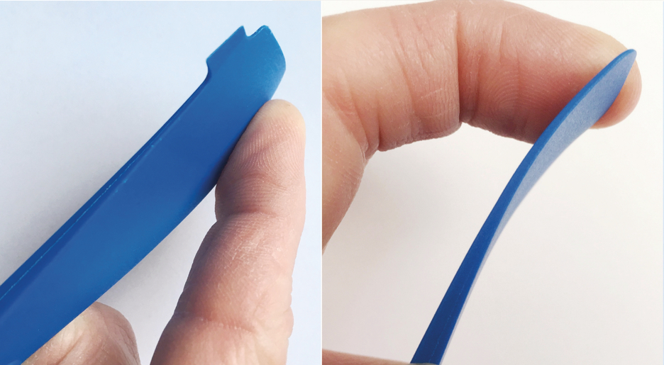The tool is used to open housing parts without scratching the sensitive surfaces. Other applications include the removal of components from electronic devices, the levering off of flat connectors or the gentle opening of clipped components. In addition, the Multi-Opener can be used, for example, to open plinth panels easily and without lever marks and to easily scrape off adhesive residues with the recessed stainless steel blade.