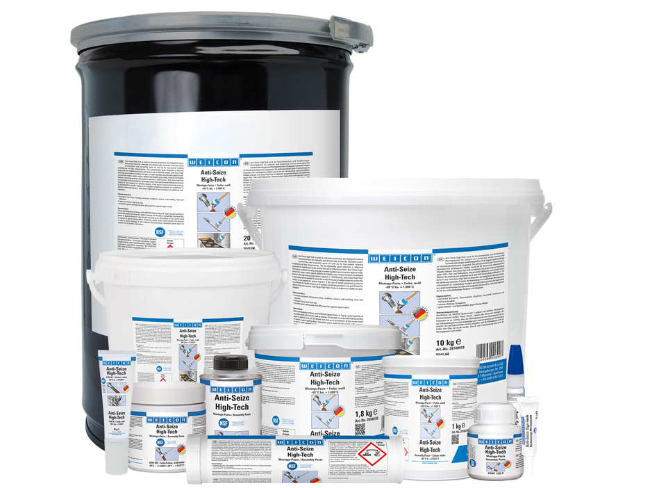 A WEICON Pasta de Montagem Anti-Seize High-Tech é resistente a temperaturas elevadas, possui um efeito de separação extraordinário, não contém metal, é adequado para qualquer material e possui o certificado NSF. É particularmente adequado quando as pastas que contêm metais podem causar reações eletrolíticas, quando os produtos que contêm níquel não devem ou não podem ser utilizados por razões de saúde e quando os produtos que contêm metais escuros não devem ou não podem ser utilizados por razões visuais.