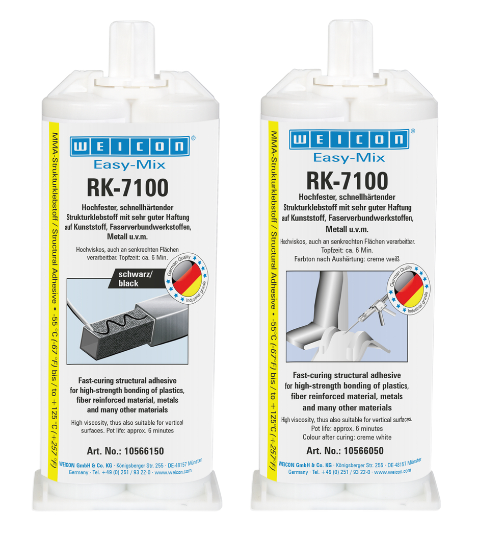 O adesivo acrílico estrutural WEICON Easy-Mix RK-7100 pode ser utilizado para unir vários materiais, tais como plásticos, metais e cerâmicas com elevada resistência à tração, ao corte e ao descolamento. É especialmente adequado para ligações estruturais onde são necessárias ligações de elevada resistência. Tem uma viscosidade elevada e, por este motivo, é adequado para o processamento em superfícies verticais. O Easy-Mix RK-7100 é de aplicação universal e pode ser utilizado, por exemplo, na tecnologia de plásticos, na construção metálica, na construção de carroçarias e veículos, na engenharia mecânica, na engenharia eléctrica, no fabrico de modelos e moldes ou na construção de feiras e exposições.