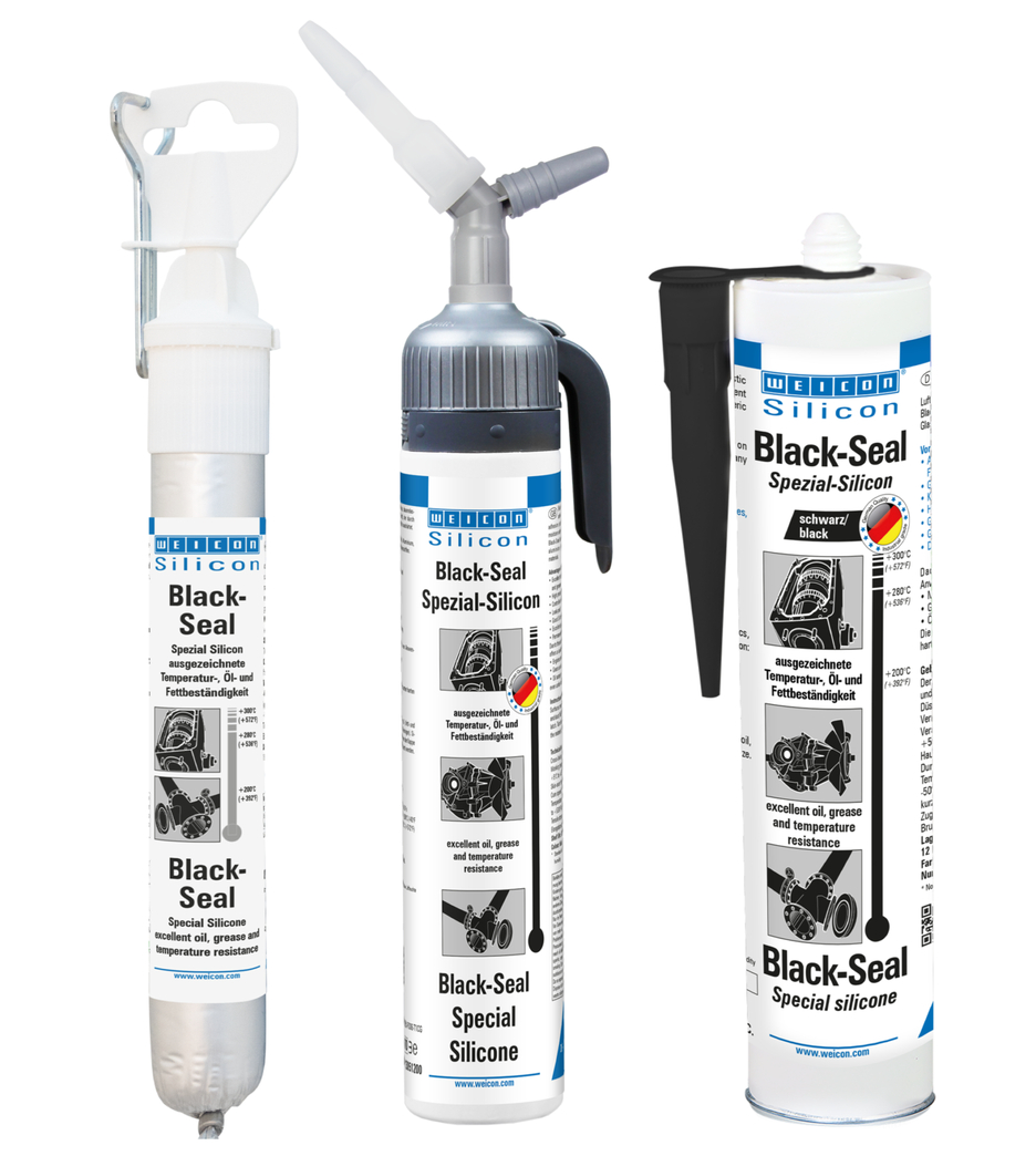 WEICON Black-Seal Preto é resistente a temperaturas elevadas (+280°C/+536°F), não contém solventes, apresenta aderência elevada, é resistente à pressão e ao envelhecimento e é extremamente elástico (alongamento até rutura de aprox. 500%). É adequado para colagem e vedação em aplicações onde é necessária uma resistência particularmente elevada a óleos e gorduras. O produto pode ser utilizado em caixas de velocidades, válvulas e tampas de carcaças, reservatórios de óleo, bombas de água, engrenagens e eixos, flanges, tanques e contentores, e em muitas outras áreas.