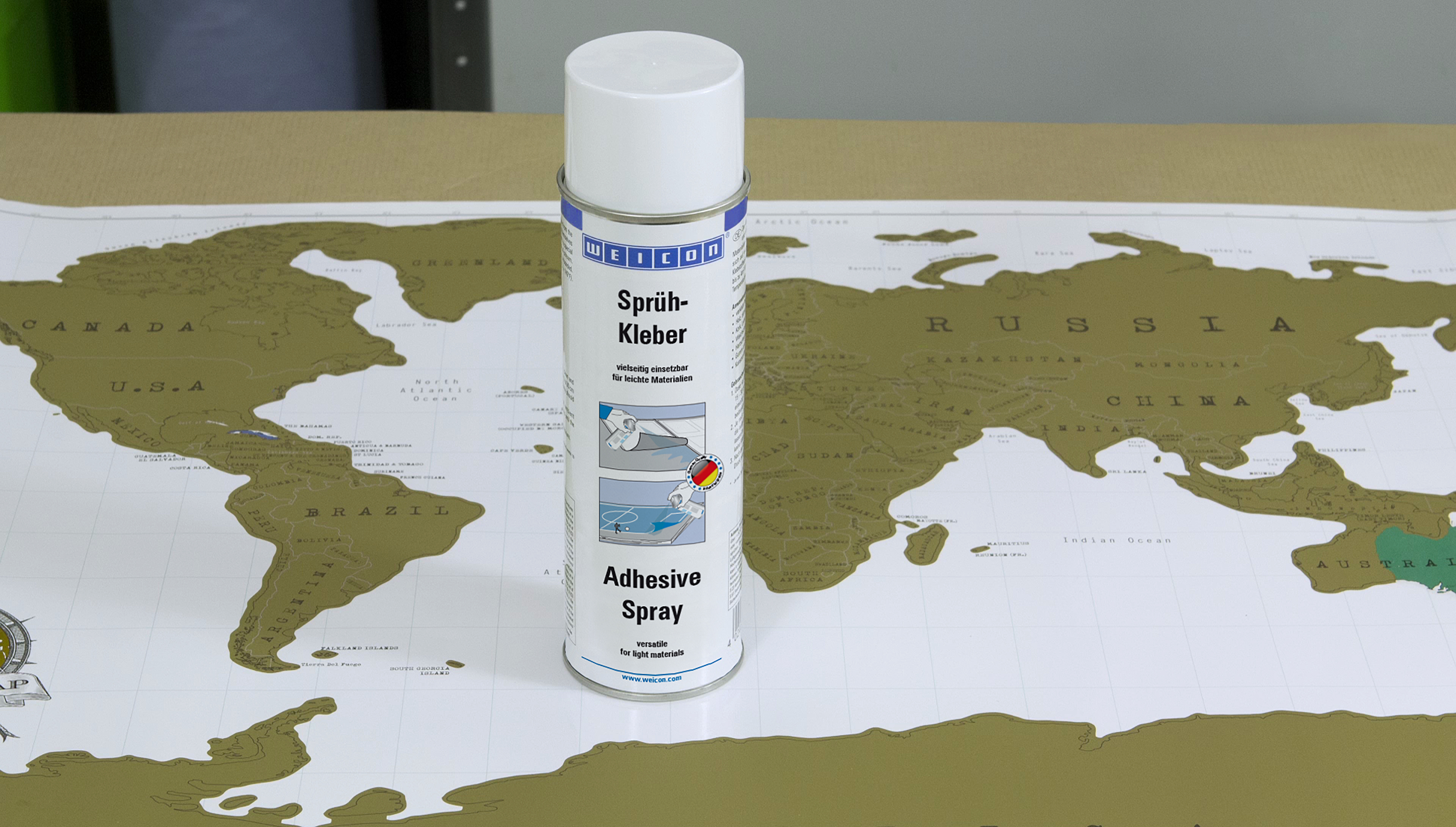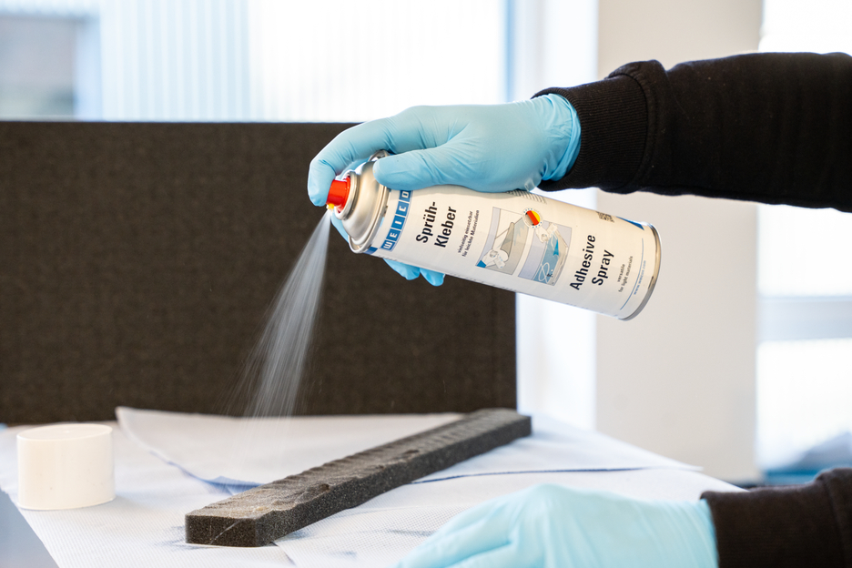 O Spray Adesivo WEICON é adequado para todas as utilizações e cola materiais ligeiros. O Spray Adesivo WEICON é adequado para a colagem de vários materiais, tais como papel, cartão, pasta de papel, madeira, folheados finos, cortiça, couro, têxteis, feltro, espuma macia, borracha, espuma de borracha e película de plástico (exceto PVC e polietileno). É especialmente adequado para a colagem de espuma dura.