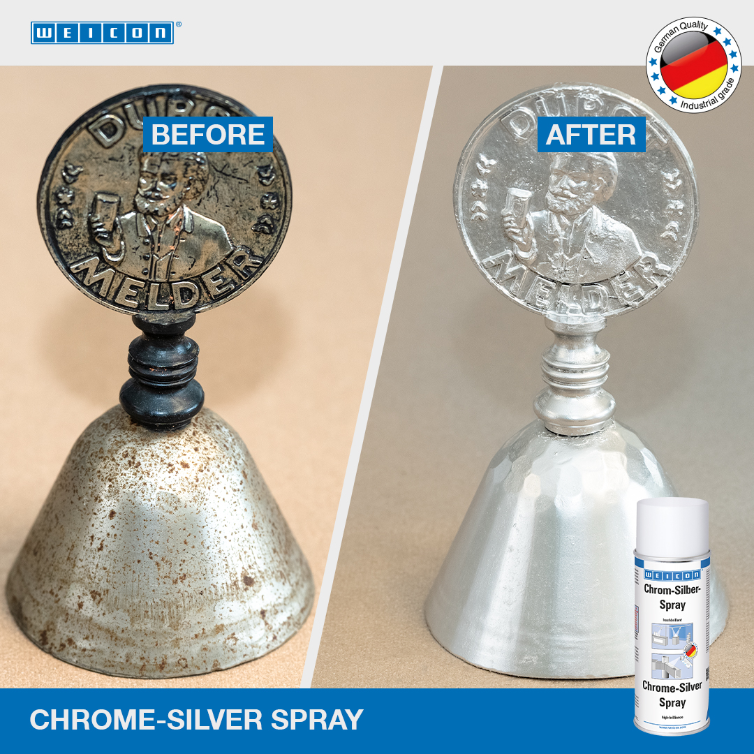 O Spray de Cromo-Prata WEICON é um revestimento de superfície de alto brilho. Graças à sua formula especial e à pureza mais elevada dos pigmentos metálicos, criam um acabamento de alto brilho. O Spray Cromo-Prata pode ser utilizado para protótipos e amostras, aplicações em espelhos (por exemplo, refletores), construção de feiras e exposições, trabalhos decorativos apelativos e para o embelezamento visual dos mais diversos materiais.