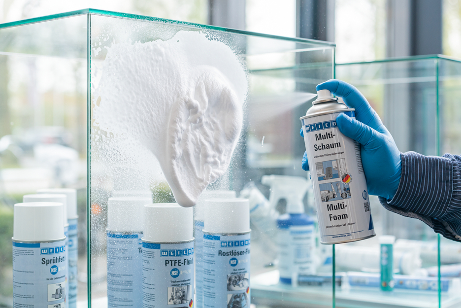O Spray de Limpeza Multi-Espuma WEICON é um forte agente de limpeza universal que não deixa resíduos. É isento de fosfatos e formaldeído, e não contém substâncias corrosivas ou cáusticas. O Spray de Limpeza Multi-Espuma pode ser utilizado para limpar muitas superfícies diferentes, tais como metal, plástico, vidro, cerâmica ou superfícies lacadas e revestidas. Este spray pode ser utilizado universalmente em aplicações industriais, trabalhos especializados e em casa.
