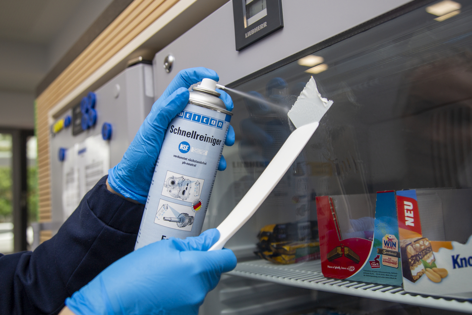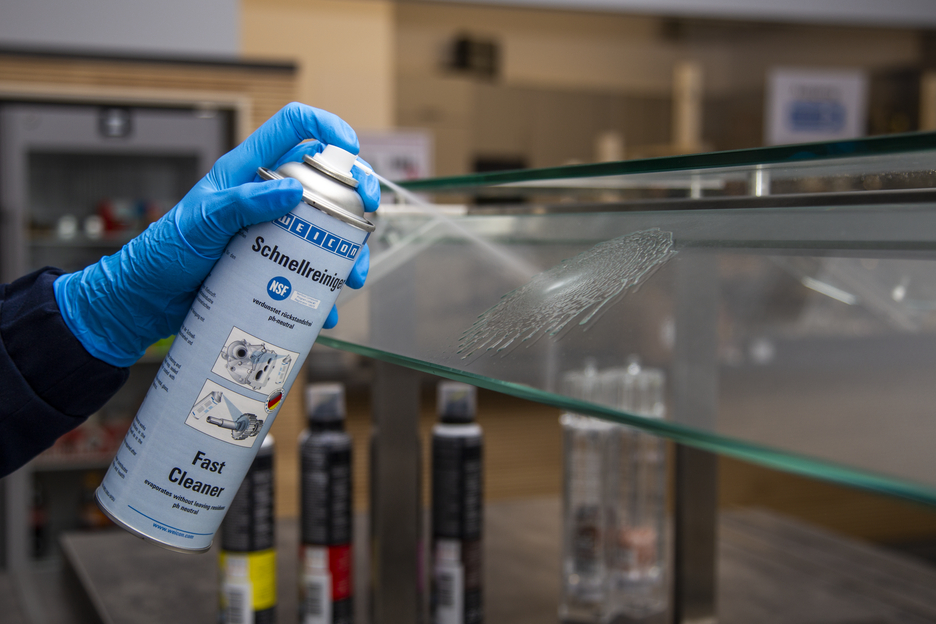 O Spray de Limpeza Rápido WEICON dispõe do certificado NSF para o setor alimentar e pode, assim, ser utilizado como agente de limpeza e desengordurante para a remoção de sujidade no âmbito de trabalhos de reparação, bem como para a remoção de adesivos na indústria alimentar e na indústria das bebidas, bem comona indústria farmacêutica e cosmética. O Spray de Limpeza Rápido é utilizado para a limpeza e desengorduramento de superfícies que vão ser coladas ou vedadas com Adesivos e Vedantes WEICON ou revestidas com Sprays Metálicos WEICON. O Spray de Limpeza Rápido tem pH neutro e é compatível com os materiais, podendo ser utilizado em diversos materiais, como por ex. metais, vidro, cerâmica e na maioria de borrachas e plásticos. Devido à sua fórmula especial e a sua certificação NSF, este spray pode contribuir para melhorar a segurança no trabalho e a proteção da saúde.