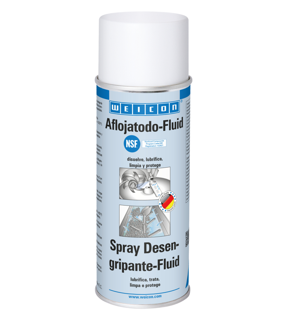 O Spray Desbloqueante-Fluid WEICON é fisiologicamente inofensivo e tem um registo NSF para a indústria alimentar. Por conseguinte, pode ser utilizado na indústria alimentar e de bebidas e nas indústrias farmacêutica e cosmética. O Desbloqueante-Fluid solta uniões roscadas, parafusos, alavancas, articulações e dobradiças enferrujadas e oxidadas, bem como mecanismos presos nos componentes. Devido à sua excelente ação capilar, o Desbloqueante-Flui pode mesmo penetrar em espaços extremamente reduzidos. Assegura o funcionamento de peças mecânicas e contatos elétricos. Este spray protege permanentemente contra a corrosão e a oxidação. Limpa e conserva superfícies metálicas, peças mecânicas e sistemas elétricos. Devido à sua fórmula especial e certificação NSF, pode contribuir para melhorar a segurança no trabalho e a proteção da saúde.
