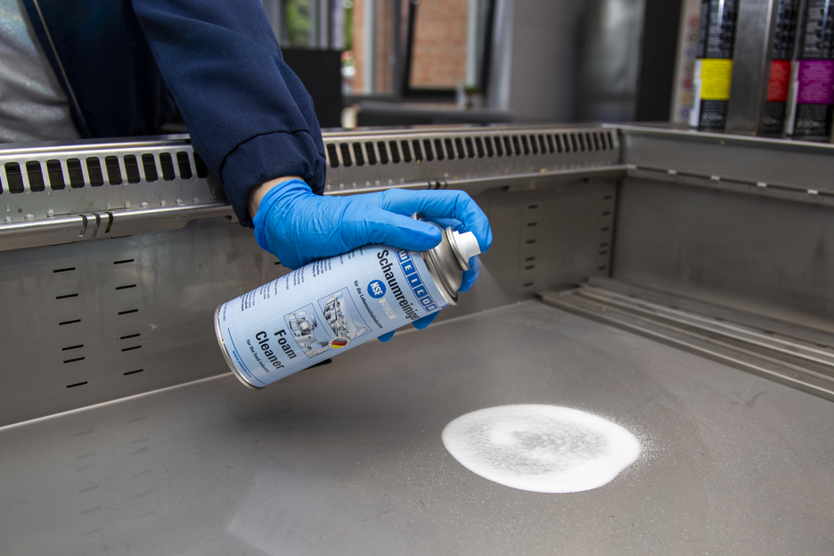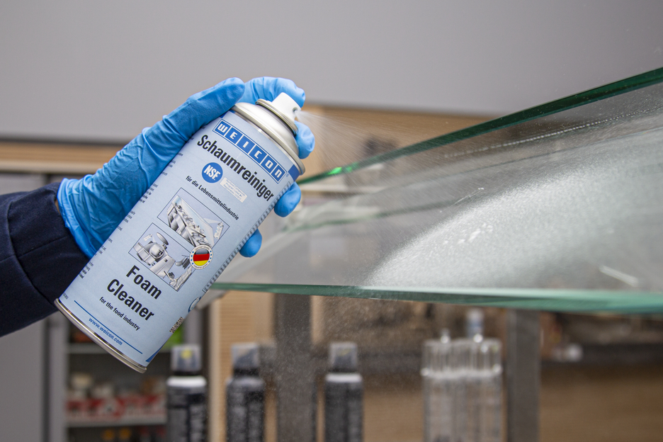 O Spray Espuma de Limpeza WEICON é de aplicação universal e pode ser utilizado para a limpeza e desengorduramento de superfícies resistentes à água e para a remoção de sujidades em superfícies de plástico, vidro e têxteis. Devido ao seu registo NSF A1, a espuma de limpeza é adequada para utilização em áreas sensíveis, como a indústria alimentar e de bebidas, bem como a indústria farmacêutica e cosmética. Este spray é adequado para a limpeza de correias transportadoras com contacto com alimentos, por exemplo, em linhas de produção ou lojas de retalho. Remove a sujidade das caixas das máquinas e limpa balanças, ecrãs planos, ecrãs tácteis, sistemas de navegação e muito mais. A Espuma de Limpeza elimina muitas impurezas diferentes, tais como óleos e gorduras, impressões digitais, fuligem, nicotina, poeira, bem como resíduos de insetos. Pode ser utilizado sempre que não sejam permitidos detergentes ácidos ou alcalinos.