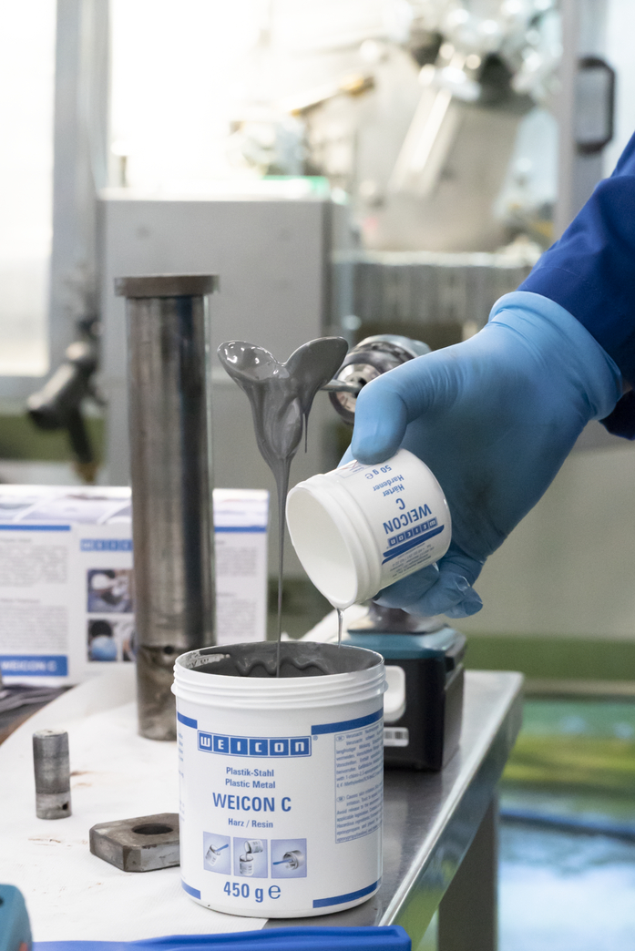 WEICON C é um sistema de resina epóxi fluível e resistente à temperatura, especialmente para uso industrial. O adesivo não é corrosivo, é antimagnético e cura praticamente sem retração. O Plástico Metálico WEICON C é particularmente adequado como adesivo para aplicações em grande escala, para a fundição de moldes e para a produção de dispositivos de fixação e ferramentas (por exemplo, moldes de injeção). Pode ser utilizado no sector do fabrico de ferramentas e moldes, bem como em muitas outras áreas industriais sujeitas a elevadas tensões térmicas.