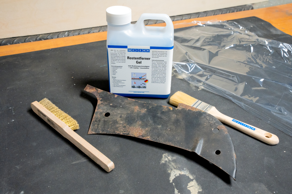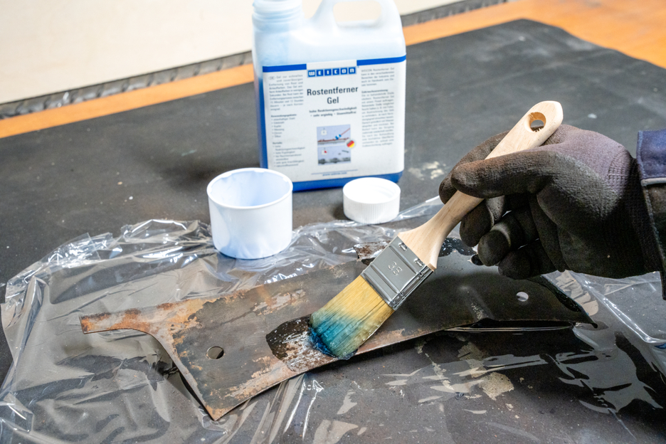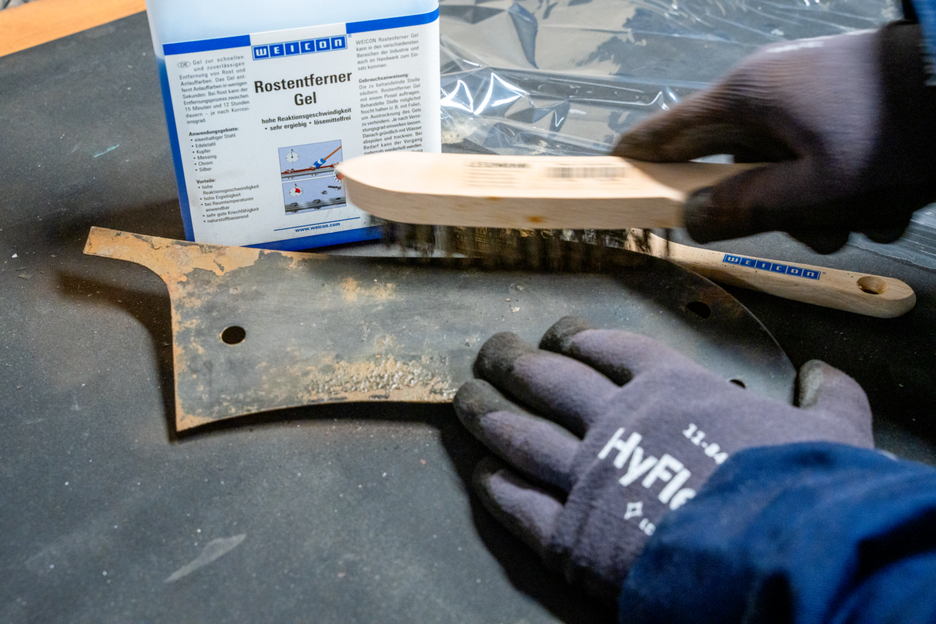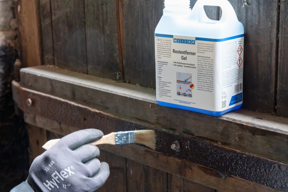 Gel para a remoção rápida e fiável de ferrugem e manchas. O Gel Removedor de Ferrugem pode ser utilizado em aço ferroso, aço inoxidável escovado, cobre, latão, cromado e prata. Tem uma elevada velocidade de reação, penetra muito bem e é muito económico. O gel elimina as manchas em apenas alguns segundos. No caso da ferrugem, o processo de remoção pode demorar entre 15 minutos e 12 horas - dependendo do grau de corrosão. Este gel azul não precisa de ser aquecido para aplicação, mas pode ser processado à temperatura ambiente. Esta solução tem como base substâncias naturais, é isenta de solventes e garante uma remoção suave da ferrugem. O WEICON Gel Removedor de Ferrugem pode ser utilizado em várias áreas da indústria e do comércio.