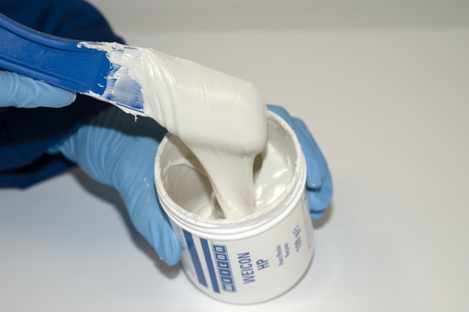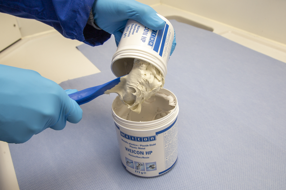 O Plástico Metálico WEICON HP é uma resina epóxi de 2 componentes com um tempo de cura mais prolongado, enorme resistência ao impacto e também elevada elasticidade residual e resistência à abrasão. Devido ao seu alto alongamento na ruptura e à consistência pastosa da resina epóxi, o WEICON HP pode ser utilizado para reparos, como proteção contra desgaste e para revestimento de equipamentos sujeitos a cargas pesadas. O adesivo também apresenta excelente adesão em superfícies húmidas e molhadas bem como subaquáticas.