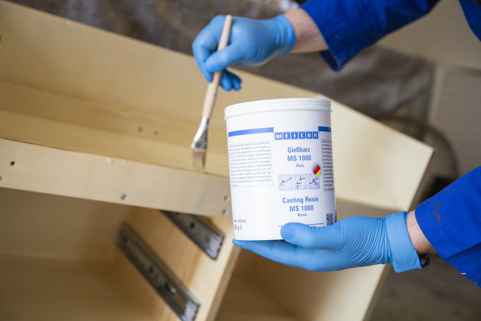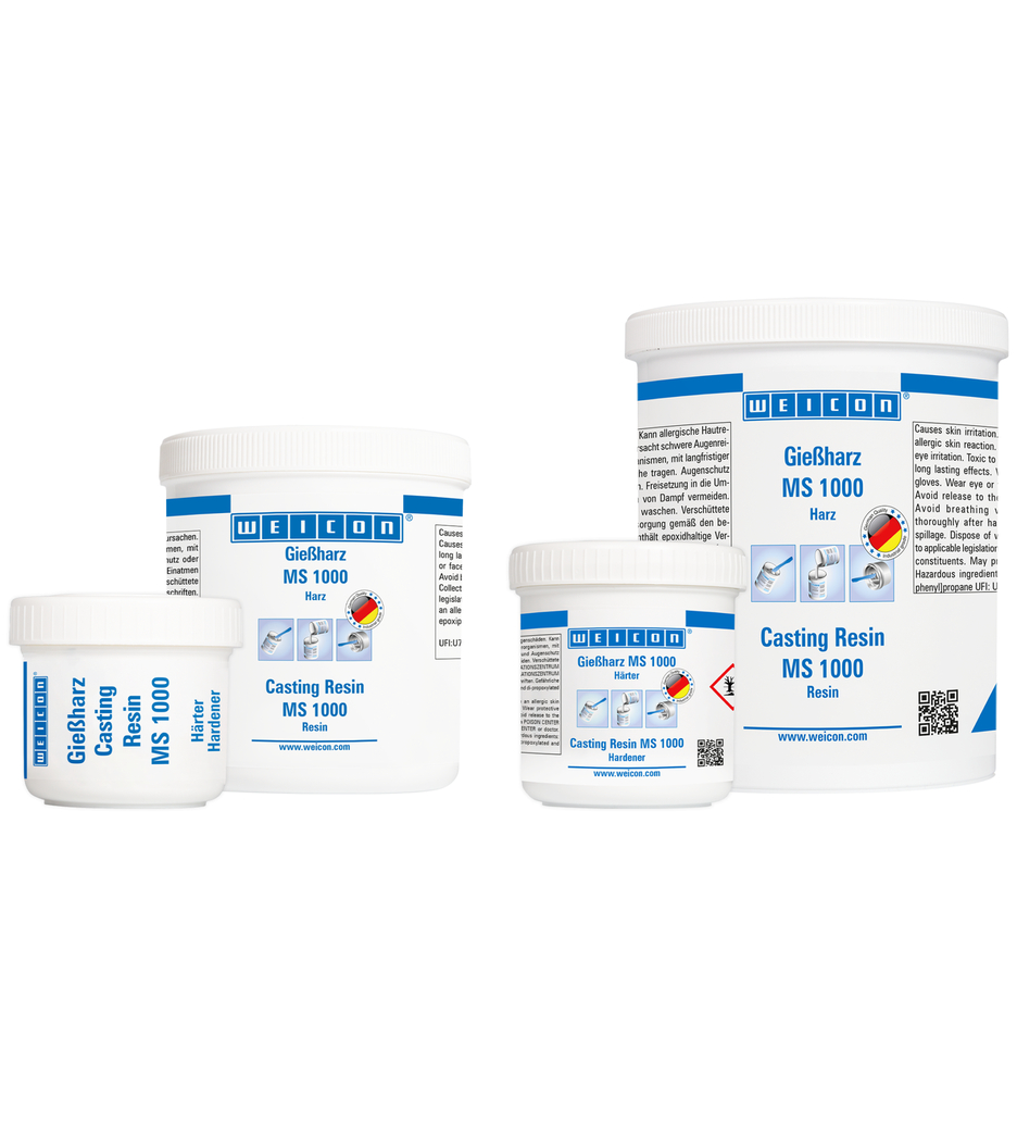WEICON Resina Líquida MS 1000 é um sistema de resina epóxi transparente e muito fluida com alta resistência mecânica. Adequa-se para as mais variadas aplicações. Resina Líquida MS 1000 adere bem ao metal, madeira, espuma rígida e muito s plásticos. Pode ser utilizada para a colagem adesiva de grandes superfícies ou para laminação de buchas e parafusos compósitos roscados. Devido à sua baixa viscosidade, o sistema de resina epóxi também é adequado para a fundição de componentes elétricos. Pode ser utilizado para a produção de compósitos de fibra, no fabrico de ferramentas e moldes, na indústria elétrica, na construção de máquinas e em muitos outras áreas industriais. O MS 1000 apresenta bons resultados de humidade e penetração no tecido do vidro e, portanto, é adequado para laminação de vidro, aramida e fibra de carbono para a produção de componentes reforçados com fibra. Também pode ser facilmente combinado com diferentes cargas (pó, fibroso, tecido).